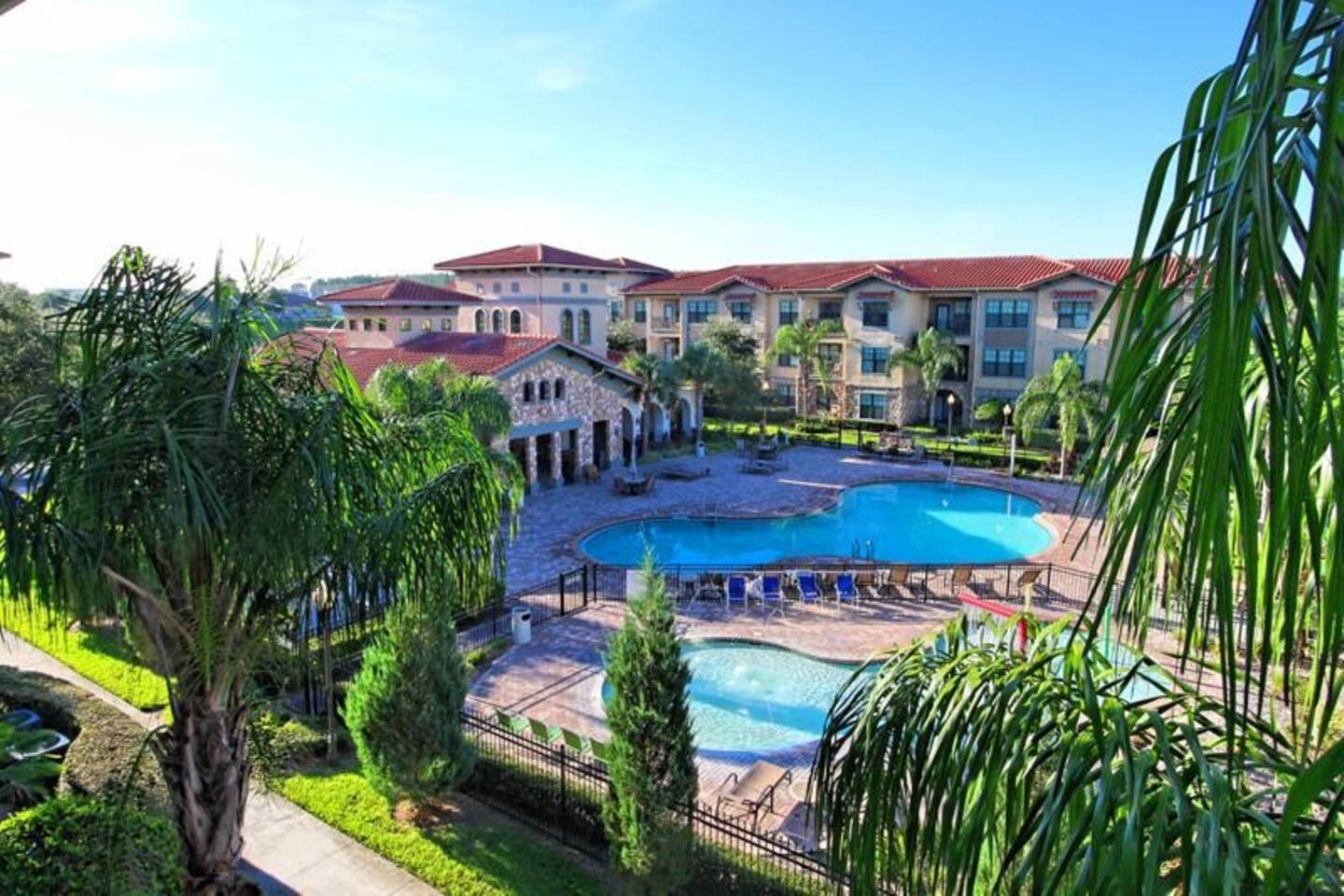Bella Piazza combines the ambiance of a modern resort community with the elegance, comfort and beauty of traditional Mediterranean style buildings. Resort facilities include a spacious clubhouse, game room, business center, two pools, outdoor spa, water playground, fitness center, BBQ grills - all set in lush tropical landscaping. Bella Piazza is conveniently located off Highway 27 in 4 corner area within close distance of a Publix supermarket and a great selection of restaurants. Walmart is 3 miles away. Easy access to Disney (8 miles) or to I4 to the East and West coasts. NOTE: an elevator in each building and No Daily Resort fee to guest. Bella Piazza resort condo is less than 1 mile from highlands reserve golf club and less than 10 minutes to 4 public golf courses. There are a variety of restaurants that are with in a 5 minute walking distance from the condo, including a Pizza, Italian, Chinese, Japanese, U.K., an IHOP & an Applebees. As There is also a Publix supermarket. The Condo is 15 minutes to Disney, 25 minutes to Sea World and approx. 35 minutes to Universal Studios and 40 minutes to the Orlando international airport. The second floor unit is very convenient, private and quiet. Business center with computers and printers right next down in the club house. This is resort community with manager, security officer, security camera, but quiet and no resort fee.