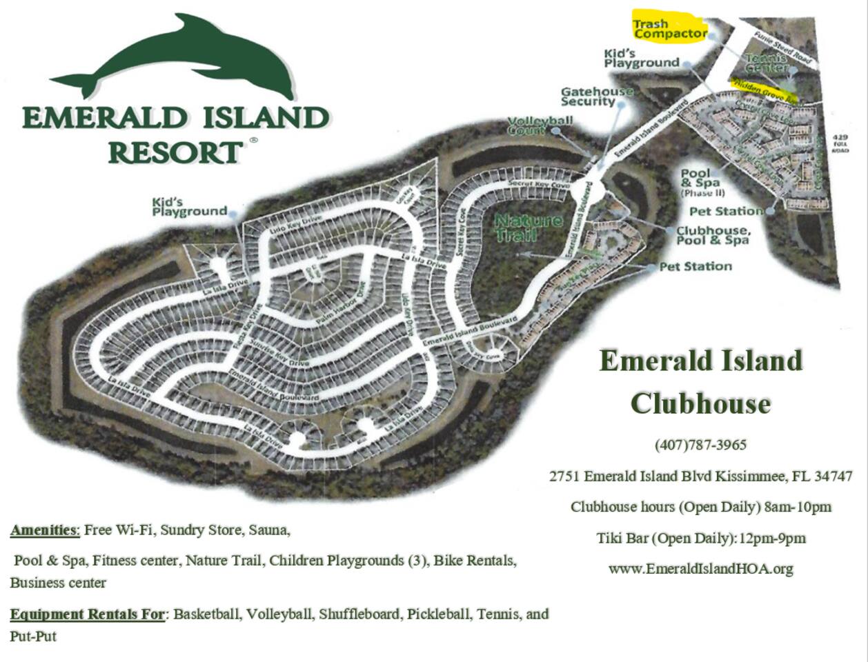 CHECK IN/CHECK OUT Check in: 04:00 PM Check out: 10:00 AM. If you need an early check-in or late check-out, we may be able to accommodate for an additional fee, subject to availability and approval by our cleaning team. This is possible if no other guests are departing on the same day. However, since we can't predict same-day bookings, cleaning must begin at 10 a.m. to ensure the home is ready by 4 p.m. Alternatively, you can extend your stay at a discounted rate if the calendar permits. Emerald Island Resort offers the following facilities: The club house by the main gate. 2 Swimming Pools Spa Dry Sauna Fitness Suite Mini golf Tennis Courts Volleyball Courts Basketball Courts Business center