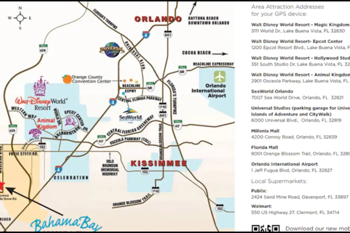 Other Popular Resort Facilities Include: - Free wifi CHECK IN/CHECK OUT Check in: 04:00 PM Check out: 10:00 AM. If you need an early check-in or late check-out, we may be able to accommodate for an additional fee, subject to availability and approval by our cleaning team. This is possible if no other guests are departing on the same day. However, since we can't predict same-day bookings, cleaning must begin at 10 a.m. to ensure the home is ready by 4 p.m. Alternatively, you can extend your stay at a discounted rate if the calendar permits. - 4 heated community pools - Tennis court, Basketball Court - Shuffleboard court - Nature Trail (see if you can spot Alligators! Amazing trail for bird watching ) - Spa & Salon - Travel Office (travel advice, coupons & discounted tickets) - Convenience Store - 24-hours front desk service - Fishing equipment rental - Gated with 24 hour Security Bahama Bay Resort in Davenport, Florida, offers convenient access to a variety of attractions, shopping centers, Walmart locations, restaurants, transportation options, and airports. Here’s a comprehensive guide: Attractions Walt Disney World Resort (Approx. 15 miles) Magic Kingdom, Epcot, Disney’s Hollywood Studios, and Disney’s Animal Kingdom. Universal Orlando Resort (Approx. 25 miles) Universal Studios Florida, Islands of Adventure, and Volcano Bay water park. SeaWorld Orlando (Approx. 20 miles) Marine zoological park with thrilling rides, shows, and animal encounters. LEGOLAND Florida Resort (Approx. 25 miles) Family theme park with rides, shows, and a water park, designed for kids. Lake Louisa State Park (Approx. 15 miles) Hiking, biking, canoeing, and camping opportunities in a scenic natural setting. Shopping Orlando Vineland Premium Outlets (Approx. 18 miles) A large outlet mall with a wide variety of designer and name-brand stores. Disney Springs (Approx. 16 miles) An outdoor shopping, dining, and entertainment complex with unique shops and restaurants. The Mall at Millenia (Approx. 25 miles) Upscale shopping mall with high-end stores, dining options, and services. Posner Park Shopping Mall (Approx. 4 miles) Nearby shopping area with popular retail stores, restaurants, and entertainment options. Old Town (Approx. 15 miles) Unique shopping and entertainment district featuring specialty shops, restaurants, and amusement rides. Walmart Walmart Supercenter (Approx. 5 miles) Address: 2855 N Old Lake Wilson Rd, Kissimmee, FL 34747 Walmart Supercenter (Approx. 7 miles) Address: 550 US-27, Clermont, FL 34714 Restaurants Bahama Bay Resort Restaurants Tradewinds Restaurant & Bar: On-site dining with a Caribbean-inspired menu. Mambo’s Poolside Bar & Grill: Casual poolside dining with light bites and drinks. Local Dining Options Manny’s Original Chophouse (Approx. 5 miles): Famous for its steaks and hearty American cuisine. The Fish & Chip Shop (Approx. 5 miles): Traditional British fish and chips. Applebee’s Grill + Bar (Approx. 5 miles): Family-friendly chain serving American fare. Ovation Bistro & Bar (Approx. 4 miles): BBQ and American cuisine with a wide selection of craft beers. Orlando Dining A vast array of dining options, from fine dining at celebrity chef restaurants to casual eateries. Transportation Car Rentals Available at Orlando International Airport and nearby rental agencies. Essential for visiting the numerous attractions and exploring the area. Shuttle Services Many local shuttle services offer transportation to major attractions like Disney World and Universal Studios. Ride-Sharing Services Uber and Lyft are widely available for convenient transportation around the area. Public Transportation Limited options in Davenport, but Lynx buses operate in the greater Orlando area. Airports Orlando International Airport (MCO) (Approx. 30 miles) Primary airport serving the Orlando area, with a wide range of domestic and international flights. Orlando Sanford International Airport (SFB) (Approx. 55 miles) Another option for air travel, primarily serving domestic flights and some international destinations.